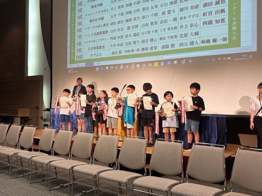 また、中級以上の生徒を対象に年に2回行われるコンクールの結果を踏まえて地方大会に出場することができ、成績優秀者には幕張メッセで行われる全国珠算連盟 全国大会に出場する権利が与えられます。